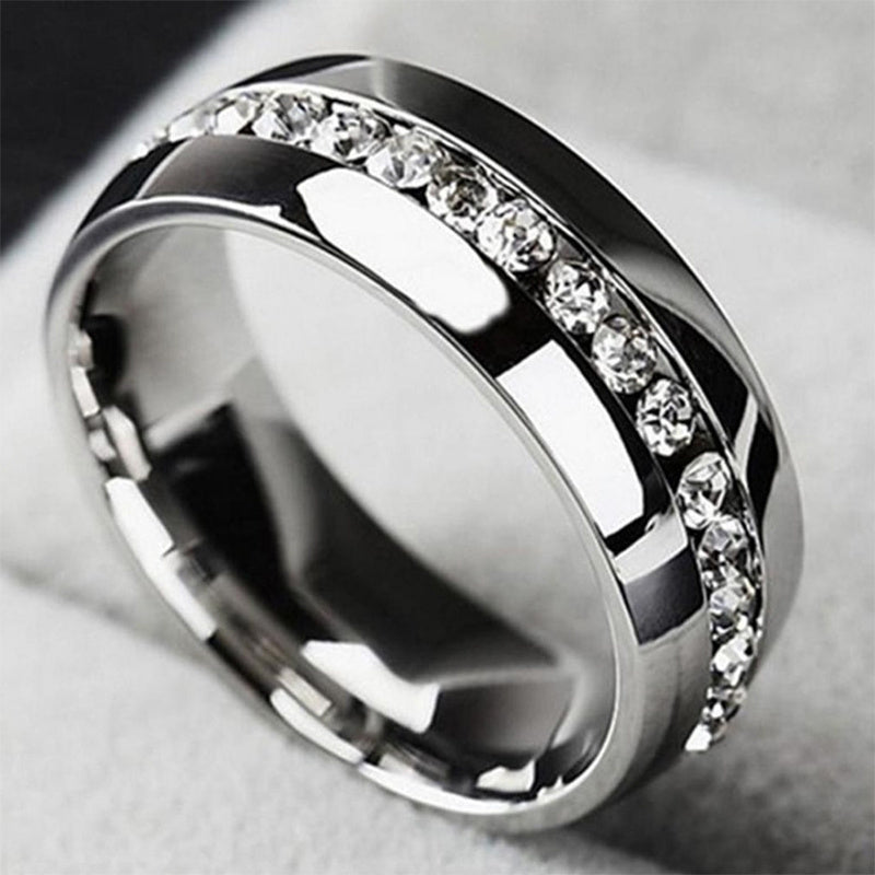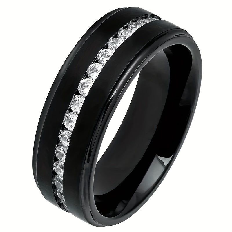 Modebandsring Gjord Av Titan Belagd En Rad Av Glänsande Zirkon Silverfärgad Eller Gyllene Gör Ditt Samtal Lämpligt För Män Och Kvinnor